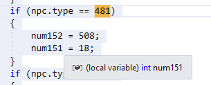 num###variables shown in this guide will likely not match the values you see in your copy of the source code due to Terraria updates how decompilation works.