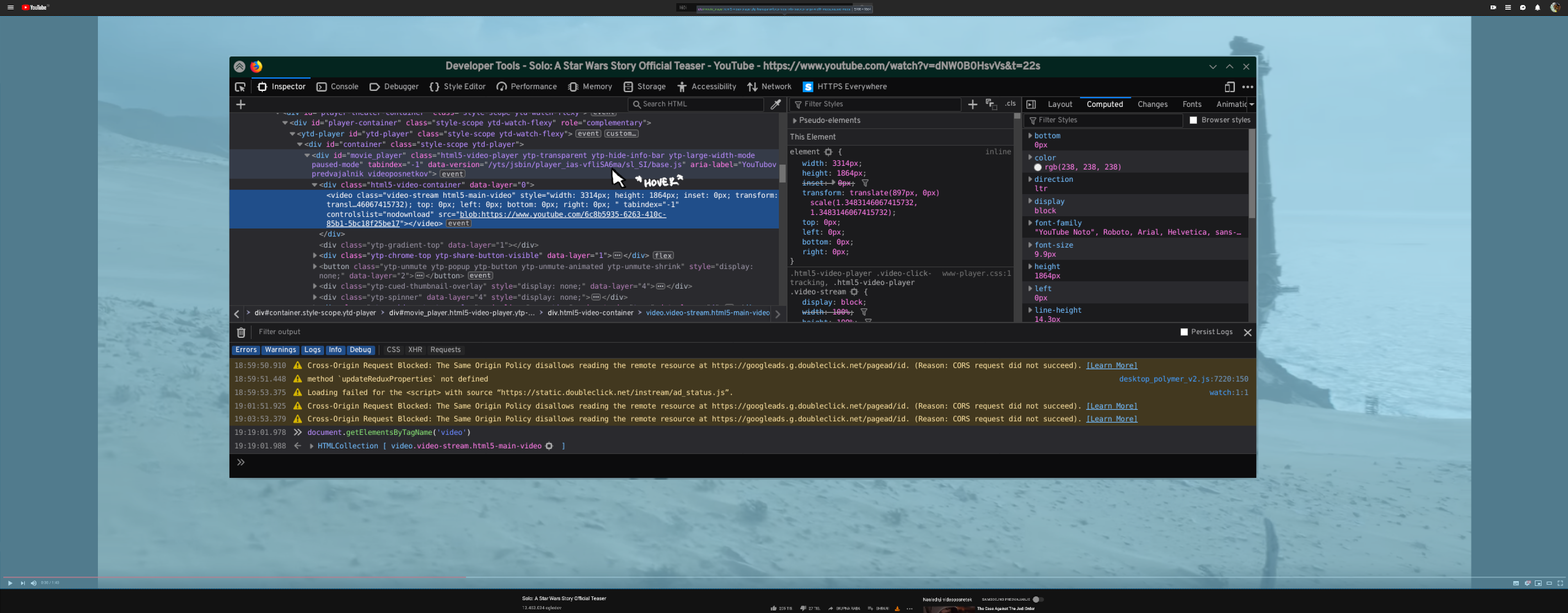 Finding the element that contains the video is fairly easy. However, finding the player element is harder because we need to make some assumptions to make that. I'll skip the unnecessary details, but needless to say: since every site is coded in a different manner and has different quirks, the extension may fail to pick the correct player element on certain sites. If that happens, cropping will not work.