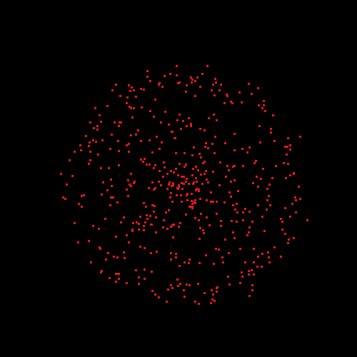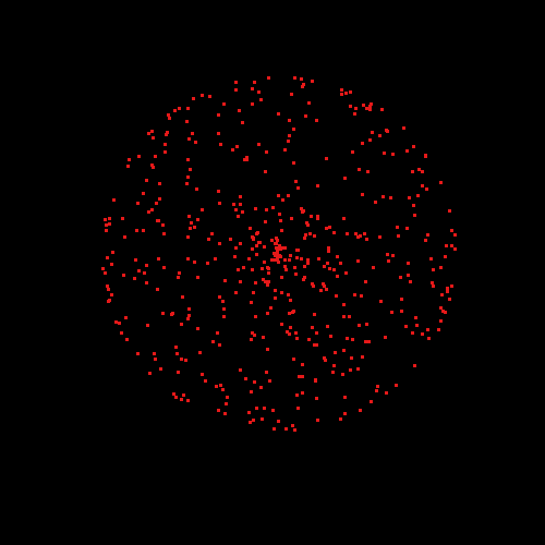 - Define an update function so that particles move away from the system origin while their lifetime is > 1 and, when that is no longer true, towards it.