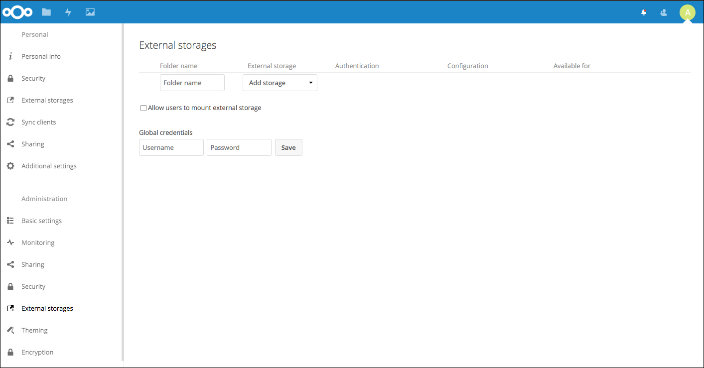 Click "External storages" under "Administration".