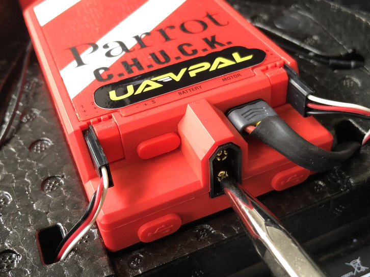 Third-party as well as the stock battery connector can squeeze CHUCK's XT60 power connectors over time and the connection might become lose. This can lead to sudden power-loss during a flight due to the vibration loosening the battery connector.