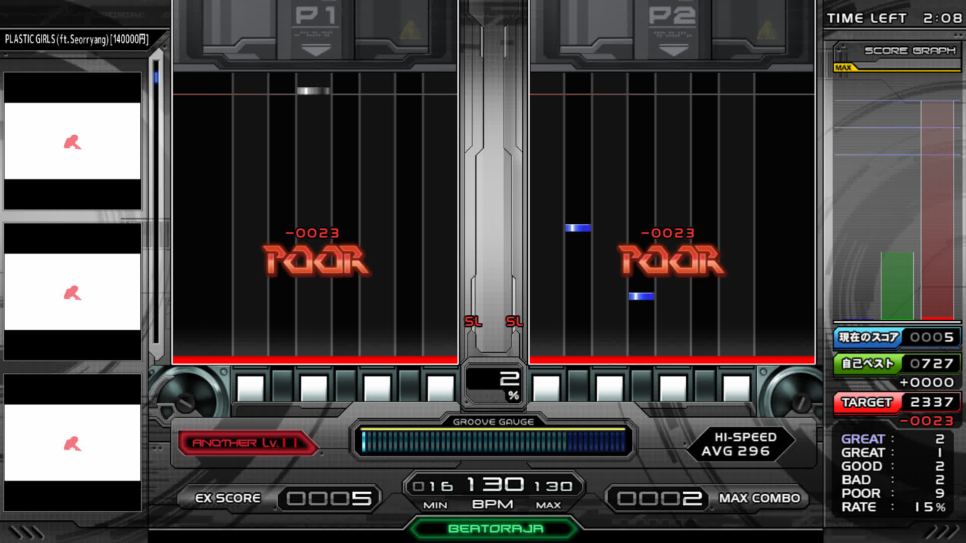 When using an LR2 Play skin in beatoraja, there are a couple of things (as of 0.8.0) to be aware of: