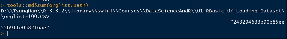 下載完畢後,請仍然用tools::md5sum(orglist.path)檢查檔案內容,確認是e42a1a80d3c2bb2318944dc4f6969909後,即可繼續課程。