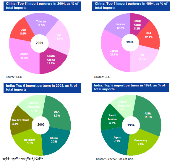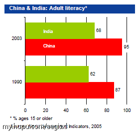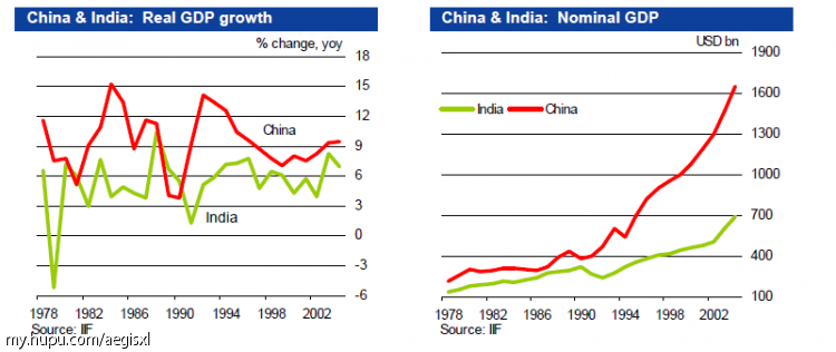 4. http://www.economist.com/blogs/dailychart/2011/10/comparing-india-and-china 前年经济学人的一个图表,很直观也独到