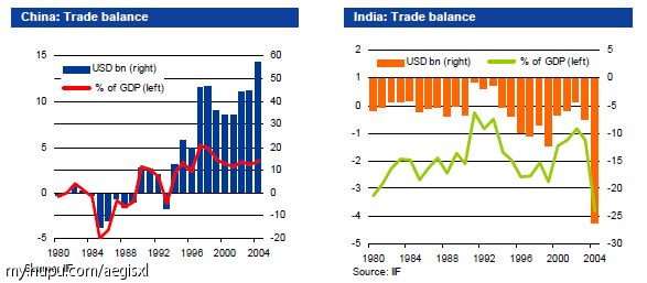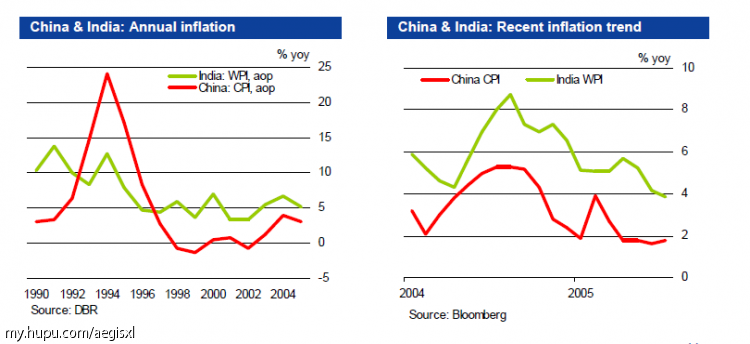 德意志银行在2005年的一个关于中印的对比文档,虽然时间较早,但是内容直观且全面,强烈推荐大家阅读,其中的资料来源多来自IIF和WB