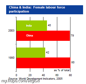 3.1.2 妇女参与劳动率,印度妇女的劳动参与率非常低,当然中国的也非常高,比一般欧美的都高。。